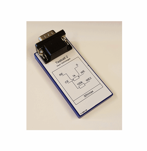 Ivium instruments which are delivered without cell cables will have a TestCell2 included. This test cell connects directly to the cell connector to allow a performance test or simple measurements to be carried out.